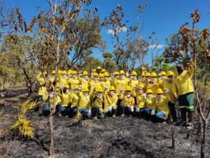 Foi dessa contradição, e da necessidade de cuidar deste elemento, que nasceu, em 2014, a Associação dos Brigadistas Akwê Xerente (Abix), no Tocantins. Ela surge para que o cuidado com o território não fosse apenas emergencial, mas contínuo, unindo o combate ao fogo, a educação ambiental, a coleta de lixo, o bem viver do povo e a valorização da cultura.